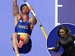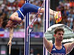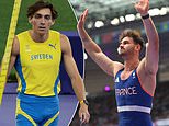 Watch as Olympic champion Armand Duplantis celebrates pole vault world record by kissing his model girlfriend and PUNCHING teammate in Paris