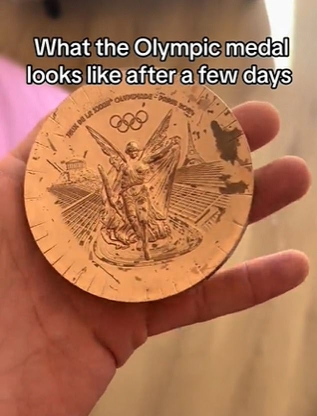 Posting on TikTok,Itkin showed that his medal was littered with scratches and dark splotches on both sides.