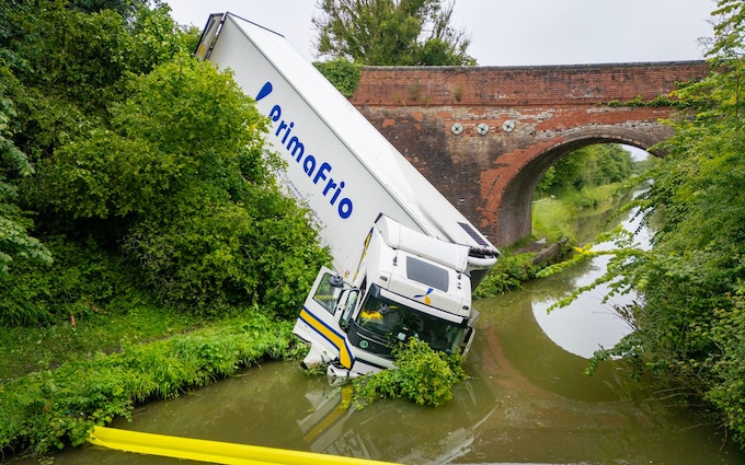 A lorry has taken a plunge into a canal in a dramatic early morning crash