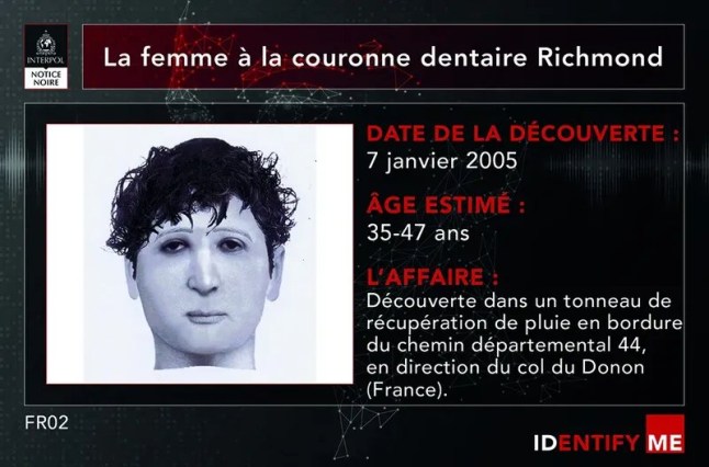 Interpol reissued a black notice yesterday to say she had been named (Picture: Interpol)With police unable to ID her,Boukerouis became known as ‘The woman with the Richmond dental crown’ because of her expensive dental work.Detectives had long suspected she was from Eastern Europe or Russia,‘due to the many young Russian women who were present in the area at the time’,the Interpol notice said.Operation Identity Me seeks to find the names of women who have been murdered or died in suspicious or unexplained circumstances.Interpol secretary general Valdecy Urquiza said: ‘This identification underscores how important it is to keep investigating unresolved cold cases. ‘As part of the Identify Me campaign,the efforts of the French authorities have helped identify a murder victim whose case had remained open for many years.’Get in touch with our news team by emailing us at .