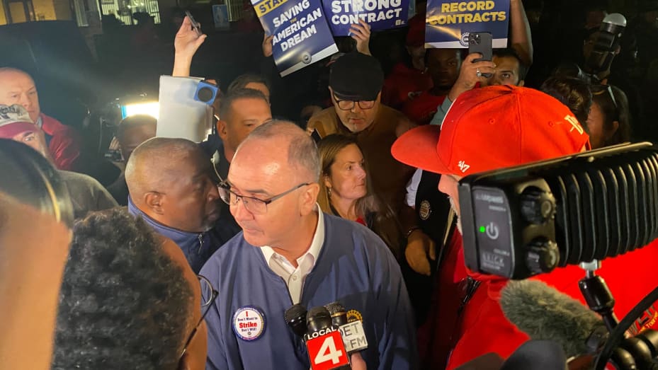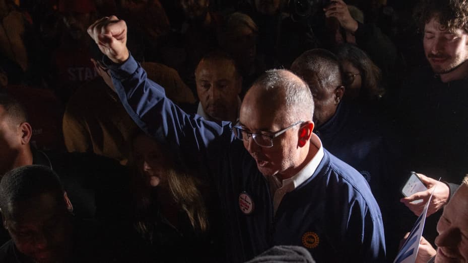 “For the first time in our history, we will strike all three of the ‘Big Three’ at once,” Fain said just after 10 p.m. ET Thursday in live remarks streamed on Facebook and YouTube. “We are using a new strategy, the ‘stand-up’ strike. We will call on select facilities, locals or units to stand up and go on strike.”