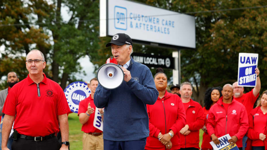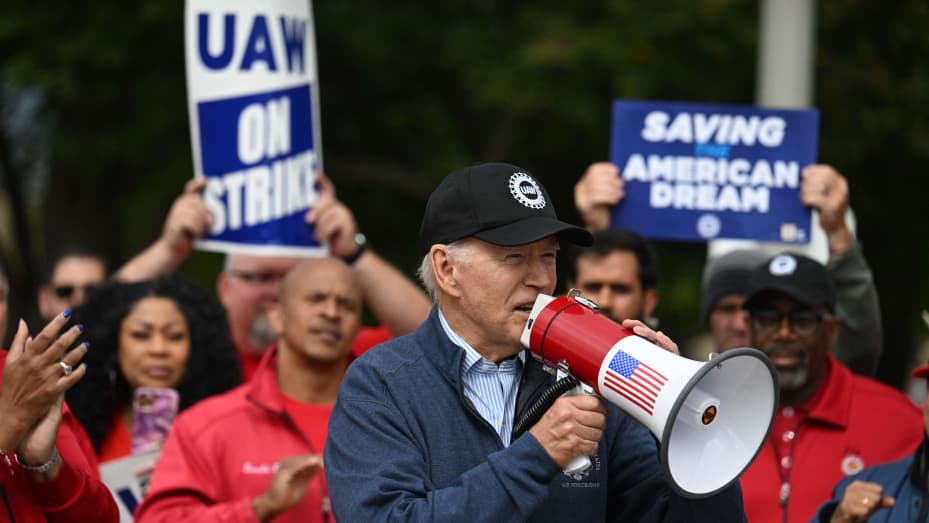 Fain, on the picket line with Biden at the Willow Run Redistribution Center, called the president joining the picket line a “historic moment.” But he did not officially endorse the commander-in-chief for next year’s presidential election.