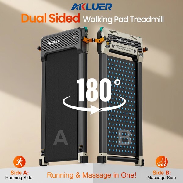 NEW YORK,Nov. 27,2024 --Akluer,a global leader in innovative fitness solutions,has officially unveiled its groundbreaking product: the Akluer 520 Dual-Sided Treadmill. This pioneering treadmill introduces a unique dual-function design,blending a traditional walking and running machine with the added benefit of a foot massager,making it the ultimate wellness device for modern homes.