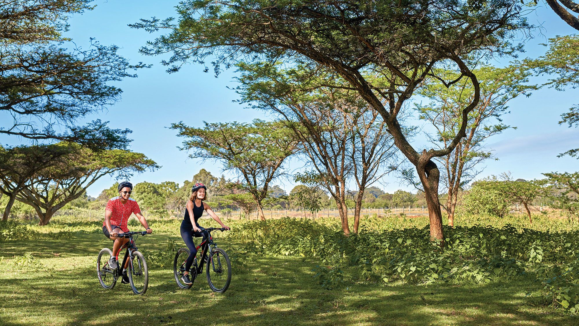 To fuel guest curiosity, the Fairmont Mount Kenya Safari Club encourages visitors to take safari tours of the surrounding reserve via bike or horseback, which unlike motor vehicles, “don’t over-stress the animals,” Delattre said. Guests can also purchase tickets to visit the property’s Animal Orphanage, which is home to animals that are either injured, too young to be rewilded or otherwise require extra attention. Proceeds from the ticket sales go toward orphanage operations and other conservation initiatives.
