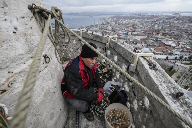ISTANBUL (AP) — In the heart of Istanbul, on top of the towering minarets that dot the city’s skyline, 68-year-old Kahraman Yildiz toils away at a craft that has illuminated the Muslim holy month of Ramadan for generations.