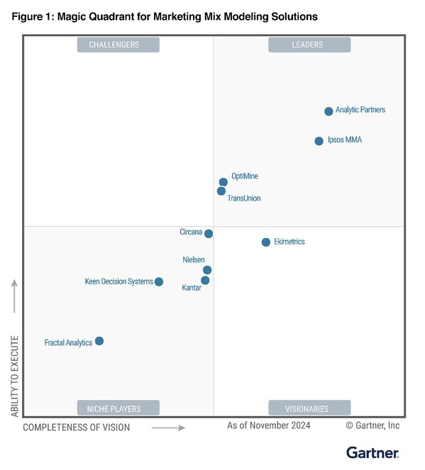 MIAMI,Nov. 25,2024 -- Analytic Partners,the Commercial Intelligence company for insights-driven brands,today announced it has beenrecognised as a Leader in the inaugural Gartner® Magic Quadrant™ for Marketing Mix Modelling (MMM) Solutions. Analytic Partners is positioned highest in Ability to Execute and furthest in Completeness of Vision.