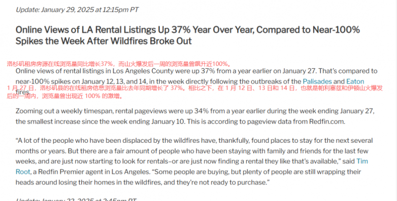 Online Views of LA Rental Listings Up 37% Year Over Year, Compared to Near-100% Spikes the Week After Wildfires Broke Out