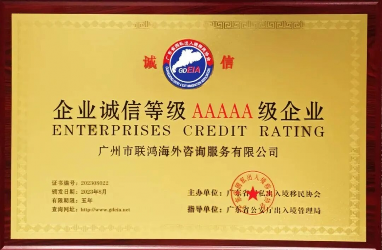 AAA 级 Enterprise Integrity Rating (2023-2028)Issued by: Guangdong Provincial Immigration AssociationSupervised by: Guangdong Public Security Department Exit-Entry Administration Bureau
