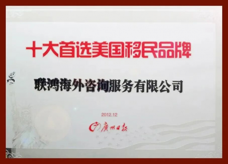 Top 10 Preferred U.S. Immigration Brands (Awarded by Guangzhou Daily, December 2012)