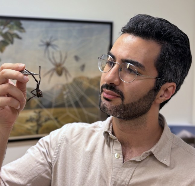 Dr Alireza Zamani with a male Satyrex ferox (Picture: Dr Zamani/Cover Media)‘This species is highly defensive. At the slightest disturbance,it raises its front legs in a threat posture and produces a loud hissing sound by rubbing specialized hairs on the basal segments of the front legs against each other,” Dr Zamani said.‘We have tentatively suggested that the long palps might allow the male to keep a safer distance during mating and help him avoid being attacked and devoured by the highly aggressive female.’As for the others in the group — the researchers named S. arabicus and S. somalicus after their respective regions of origin,while S. speciosus gets its name from its bright and beautiful coloration. The genus also includes an older species,S. longimanus,originally described from Yemen in 1903 and previously placed in a different genus.